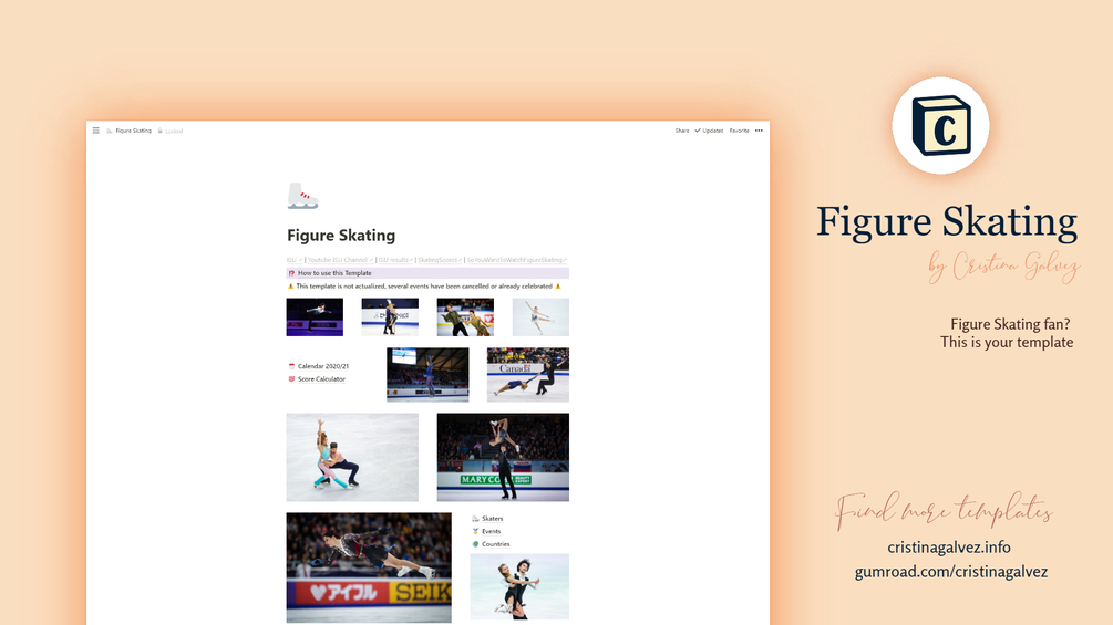 Any Figure Skating fan out there? I'm sharing the empty and explained version of my Figure Skating Notion page that I use to keep track of everything that is going on and have my competition comments organized.
