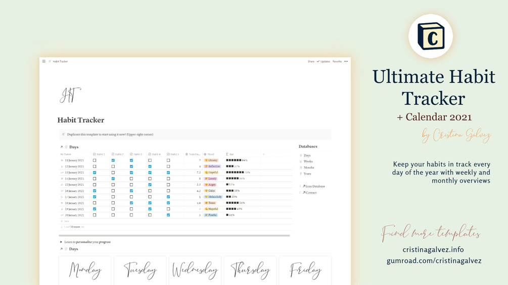 Ultimate Habit Tracker (+Calendar 2021) template for Notion
